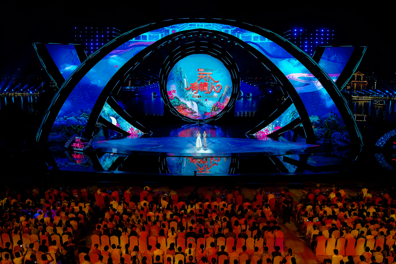 ? ? ? ? 在今年紅豆七夕節(jié)二十周年之際,這臺一貫保持高水準制作的晚會,不負眾望,再次走進陜西西咸新區(qū)昆明池和江西新余仙女湖,進行“雙城”實景錄制,將兩地秀美的自然風光納入晚會舞美設計當中,在歌曲、舞蹈、相聲等傳統(tǒng)晚會的框架外,輔以更多當下新鮮的視聽元素,包括影視化拍攝、歌舞劇表演、直播帶貨等,將整場晚會用短片串聯(lián)起來,以故事推動晚會進程,完美呈現(xiàn)“此時 醉良辰”、“此夕 最相思”、“此生 共相守”等頗具中國風的三大篇章內容?,F(xiàn)場舞臺還將融入央視媒體線上發(fā)起的紅人舞動挑戰(zhàn),并以虛擬與現(xiàn)實的時空交錯,再現(xiàn)大唐盛世等。