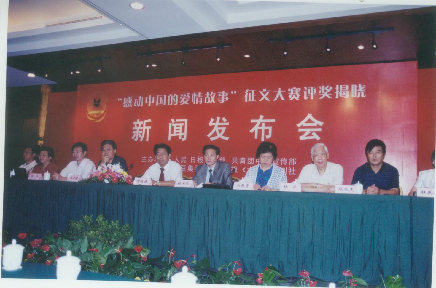 當(dāng)天下午,“中國民俗文化·紅豆相思節(jié)研討會”也在北京如期舉行。人民日報文藝部主任郭運(yùn)德,中國民間文藝家協(xié)會副主席、秘書長劉春香,共青團(tuán)中央宣傳部長操學(xué)誠等多位民俗專家學(xué)者應(yīng)邀參加了這次研討會。 感動中國的愛情故事征文大賽從5月到截止,已收到來自全國各地(含港、澳、臺)的來稿近萬篇,來稿的取材既有歷史或現(xiàn)代名人浪漫曲折的愛情歷程,也有平凡真摯而感人的愛情故事。參賽者有工、農(nóng)、商、學(xué)、兵,也有國家公務(wù)員、記者和作家,年齡最大的82歲,最小的15歲。在這次大賽中,政界偉人周恩來,航天英雄楊利偉,人民的好公安局長任長霞等名人都成了作者的創(chuàng)作題材。