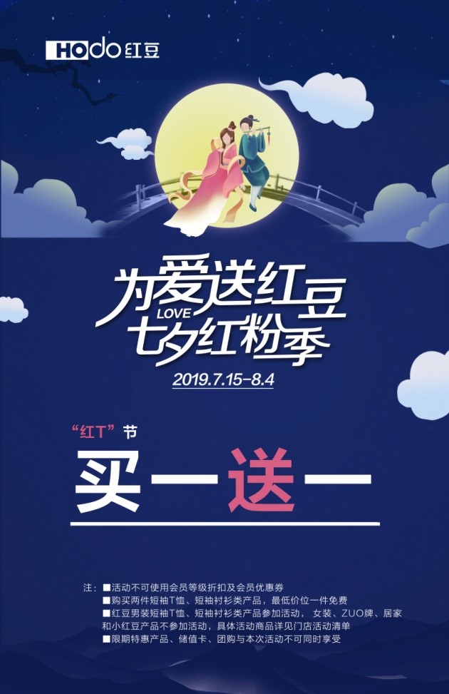 ? ? ? ? 為了感謝紅粉一直以來對(duì)紅豆的喜愛和支持,今年七夕期間,紅豆男裝全國(guó)線下門店接連幾波活動(dòng)驚喜不斷。