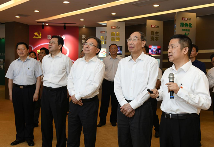7月10日,中共中央書記處書記、中央統(tǒng)戰(zhàn)部部長尤權來錫,深入民營企業(yè)調(diào)研非公經(jīng)濟發(fā)展情況。他強調(diào),要堅持以習近平新時代中國特色社會主義思想為指引,把鼓勵、支持、引導民營經(jīng)濟發(fā)展的政策落地落實,促進非公有制經(jīng)濟持續(xù)健康發(fā)展。省委常委、省委統(tǒng)戰(zhàn)部部長楊岳,省委常委、市委書記李小敏參加調(diào)研。當日下午,尤權來到紅豆集團,先后參觀了紅豆黨建館、紅豆男裝智慧門店、紅豆工業(yè)城、紅豆杉盆景育苗大棚等地。在紅豆黨建館,紅豆集團黨委書記、董事局主席兼CEO周海江向尤權介紹了紅豆創(chuàng)立現(xiàn)代企業(yè)制度+企業(yè)黨建+社會責任“三位一體”的中國特色現(xiàn)代企業(yè)制度,及企業(yè)黨建成果、企業(yè)發(fā)展等情況。
