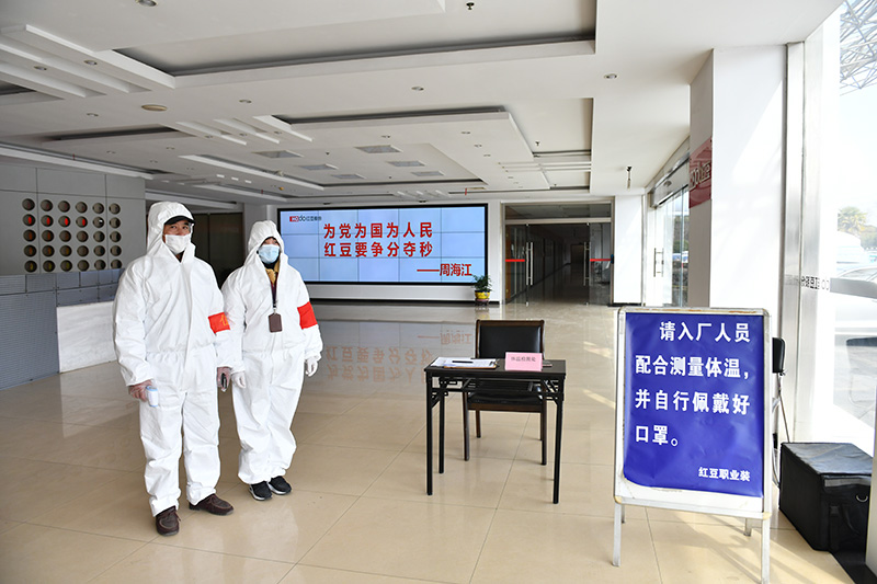 “大年初二,紅豆集團(tuán)黨委就召開(kāi)肺疫防控會(huì)議,根據(jù)各級(jí)政府要求,為有效遏制肺疫擴(kuò)散和蔓延,如何切實(shí)保障員工身體健康和生命安全進(jìn)行了深入討論和安排”周海江表示,隨后集團(tuán)成立疫情應(yīng)急領(lǐng)導(dǎo)小組、相關(guān)公司成立應(yīng)急小組,開(kāi)展相關(guān)防疫工作。