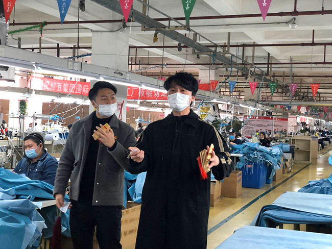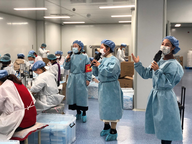2月24日,紅豆藝術(shù)團團員在團長張波帶領(lǐng)下,奔赴生產(chǎn)一線,爭當一名普通志愿者,投身于紅豆防護服的生產(chǎn)包裝工作中。他們一邊親臨工廠體驗戰(zhàn)“疫”生活,一邊現(xiàn)場采訪奮戰(zhàn)在生產(chǎn)一線的優(yōu)秀黨員干部和先進員工,收集紅豆戰(zhàn)“疫”的最新素材,為創(chuàng)作新作品鋪陳。