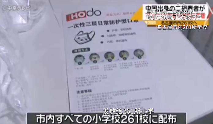 “這是我日本友人發(fā)來的視頻,紅豆口罩上了日本電視,而且還有紅豆LOGO的特寫鏡頭”紅豆外貿(mào)經(jīng)理在電話連線中介紹。據(jù)小編進(jìn)一步了解,原來是昨日日本名古屋電視中播了一則新聞:上午,中國(guó)出身的藝術(shù)大學(xué)教授、二胡演奏家張斌,給日本名古屋的小學(xué)捐贈(zèng)了2萬(wàn)枚紅豆生產(chǎn)的愛心口罩,發(fā)放給名古屋市內(nèi)261所學(xué)校,讓學(xué)生們可以安心的參加畢業(yè)式。愛心捐贈(zèng)受到了日本中京電視臺(tái)的關(guān)注,媒體特別進(jìn)行了采訪報(bào)道,受到捐贈(zèng)的學(xué)校相關(guān)人員表示“十分感謝為孩子們準(zhǔn)備了店里已經(jīng)脫銷的口罩!”