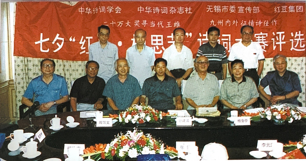 七夕“紅豆·相思節(jié)”詩詞大賽全體評委合影 后排正中:丁國成