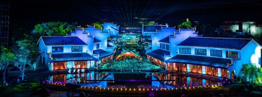 2019年,央視七夕晚會(huì)主舞臺再次回歸仙女湖,以“三大篇章”描繪“七彩七夕”,將傳統(tǒng)節(jié)日民俗與當(dāng)下流行的七夕文化相結(jié)合,展示人們對美好愛情、幸福生活的向往與追求。晚會(huì)在舞臺視覺上依然保持高水準(zhǔn),主舞臺鄰水而建,水面倒影與舞臺大屏相映成輝,水天一色的美景中盡顯古典風(fēng)韻。