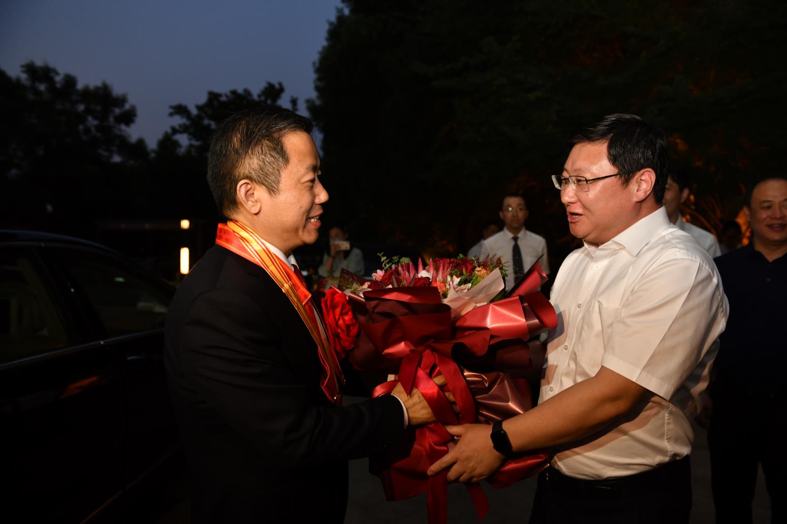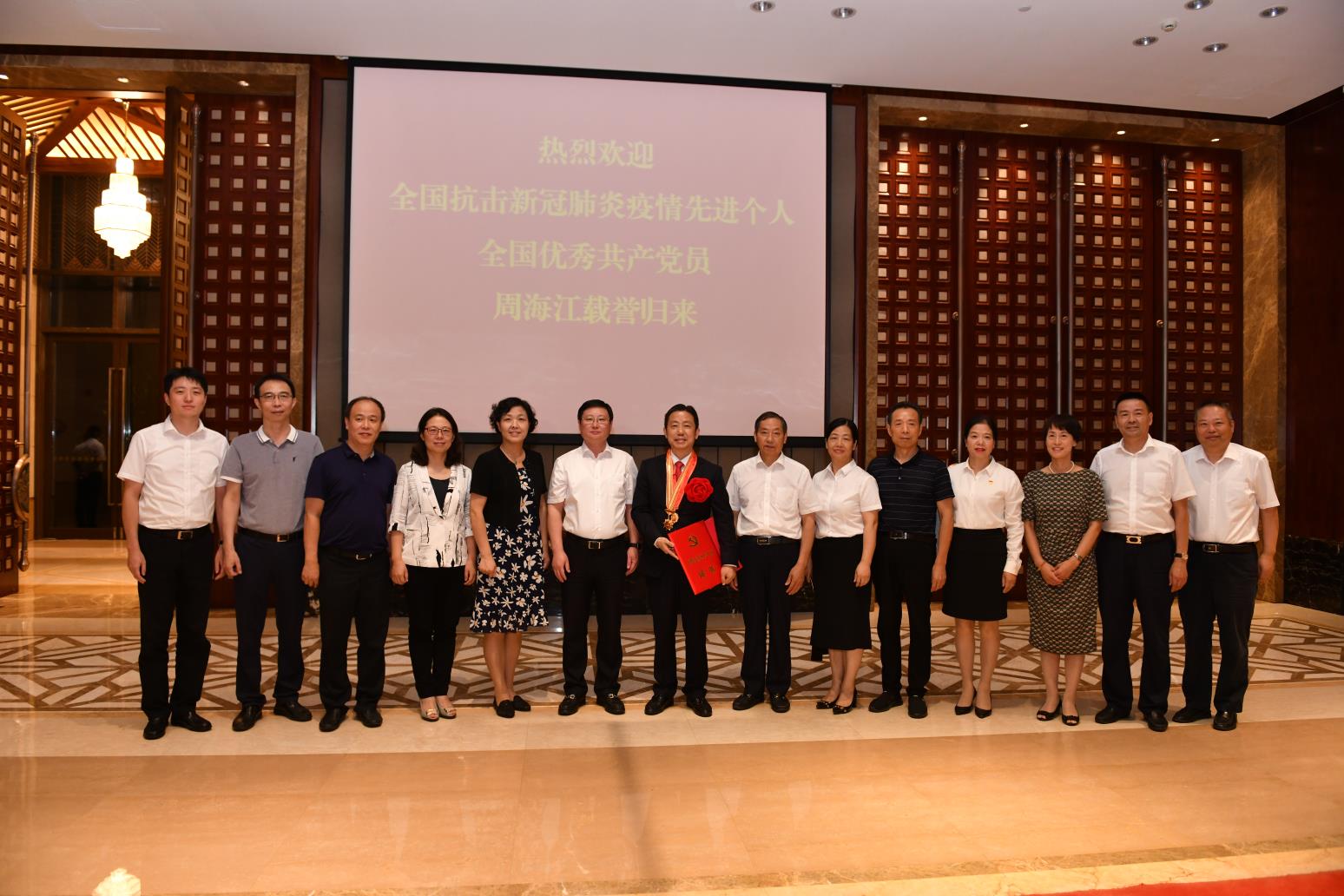 9月8日傍晚,受無(wú)錫市委黃欽書(shū)記委托,錫山區(qū)委書(shū)記周文棟、組織部部長(zhǎng)竇虹、副區(qū)長(zhǎng)陳奕一行代表市區(qū)黨政班子前往紅豆杉莊舉行簡(jiǎn)單而隆重的儀式,熱烈歡迎剛剛獲“全國(guó)優(yōu)秀共產(chǎn)黨員”“全國(guó)抗擊新冠肺炎疫情先進(jìn)個(gè)人”的紅豆集團(tuán)黨委書(shū)記周海江從北京載譽(yù)歸來(lái)。