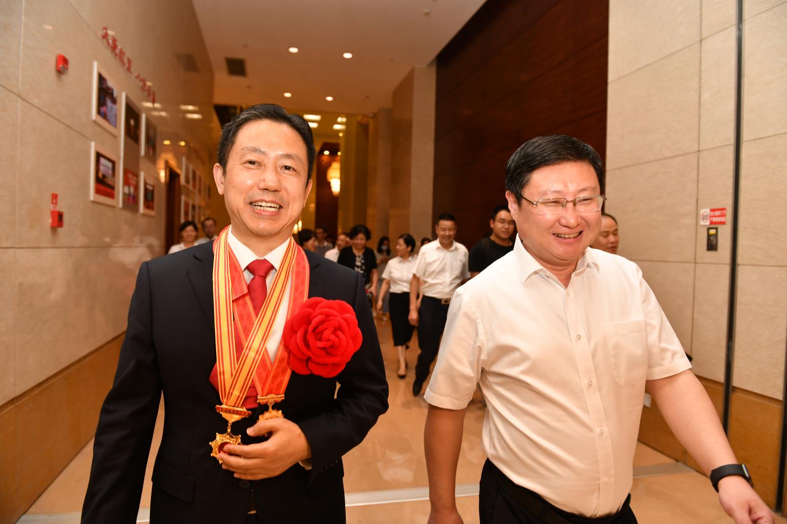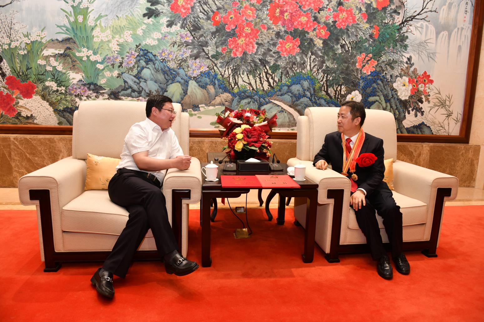 一見(jiàn)面,周文棟就高興地說(shuō),我代表錫山區(qū)四套班子,還有70萬(wàn)錫山的老百姓歡迎周海江凱旋歸來(lái)。周海江獲得的兩項(xiàng)殊榮,不僅是個(gè)人的榮譽(yù),紅豆的榮譽(yù),還是我們整個(gè)錫山,還有無(wú)錫人民的巨大榮譽(yù),是我們錫山區(qū)、無(wú)錫市的驕傲。可以說(shuō),周海江和紅豆集團(tuán)獲得了黨建工作榮譽(yù)(全國(guó)先進(jìn)基層黨組織、全國(guó)優(yōu)秀黨務(wù)工作者、全國(guó)優(yōu)秀共產(chǎn)黨員)的大滿(mǎn)貫。周海江十分感謝市區(qū)黨政班子的關(guān)心和支持。他說(shuō),此次全國(guó)抗擊新冠肺炎疫情表彰大會(huì)的儀式感很強(qiáng),正如我們?cè)谝曨l中所看到的鐘南山院士由國(guó)賓護(hù)衛(wèi)隊(duì)護(hù)衛(wèi)前往人民大會(huì)堂這是歷史第一次,勛章是由禮儀兵護(hù)送上去。我覺(jué)得黨中央是想通過(guò)此次活動(dòng)把我們民族精神賦予新的內(nèi)涵,即增加了抗疫精神,把抗疫的強(qiáng)大精神力量轉(zhuǎn)化為我們戰(zhàn)勝中美貿(mào)易戰(zhàn)等各種挑戰(zhàn)的力量源泉。周海江還表示,要化這種受激勵(lì)的奮進(jìn)力量為推動(dòng)紅豆轉(zhuǎn)型發(fā)展的動(dòng)力。要努力把紅豆的工作做好,把企業(yè)經(jīng)營(yíng)好,加快進(jìn)化升級(jí),不負(fù)黨委、政府和人民的期望。周文棟表示,感同身受周海江參會(huì)氛圍的感染和偉大抗疫精神的力量傳遞,希望這種奮進(jìn)的力量也能成為我們錫山“做全市重要增長(zhǎng)極,當(dāng)改革創(chuàng)新先行軍”的動(dòng)力源!
