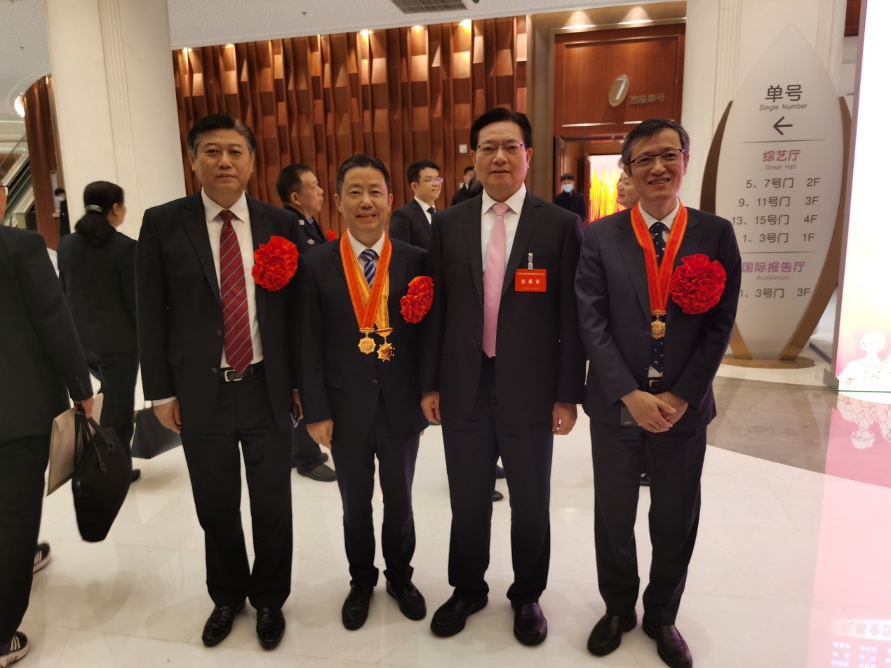 無錫市委書記黃欽(左三)帶領無錫市3名國家級榮譽代表,參加江蘇省新冠肺炎疫情表彰大會,從左至右分別為:“全國抗擊新冠肺炎疫情先進集體”獲得者,無錫市第五人民醫(yī)院黨委書記、院長魯曉杰(左一);“全國抗擊新冠肺炎疫情先進個人”“全國優(yōu)秀共產(chǎn)黨員”兩項榮譽獲得者,紅豆集團黨委書記周海江(左二);“全國抗擊新冠肺炎疫情先進個人”獲得者,無錫市人民醫(yī)院副院長、胸外科主任、主任醫(yī)師陳靜瑜(右一)。