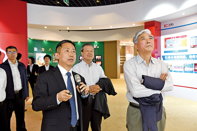 在紅豆黨建館,紅豆集團(tuán)黨委書記、董事局主席兼CEO周海江介紹了紅豆創(chuàng)立的現(xiàn)代企業(yè)制度+企業(yè)黨建+社會(huì)責(zé)任“三位一體”的中國(guó)特色現(xiàn)代企業(yè)制度、主題教育開展、企業(yè)發(fā)展等情況。周海江說(shuō),企業(yè)健康發(fā)展、企業(yè)人士健康成長(zhǎng),這是黨和國(guó)家對(duì)民營(yíng)企業(yè)的基本要求,也是廣大民營(yíng)企業(yè)的內(nèi)在要求。紅豆集團(tuán)始終堅(jiān)持黨建引領(lǐng)企業(yè)治理,將黨的政治優(yōu)勢(shì)轉(zhuǎn)化為企業(yè)發(fā)展優(yōu)勢(shì),始終堅(jiān)持“聽黨話、跟黨走,講正氣、走正道”,始終堅(jiān)持“以人民為中心”的發(fā)展理念,不忘初心、牢記使命,致富鄉(xiāng)親、造福社會(huì),實(shí)業(yè)報(bào)國(guó)、八方共贏。