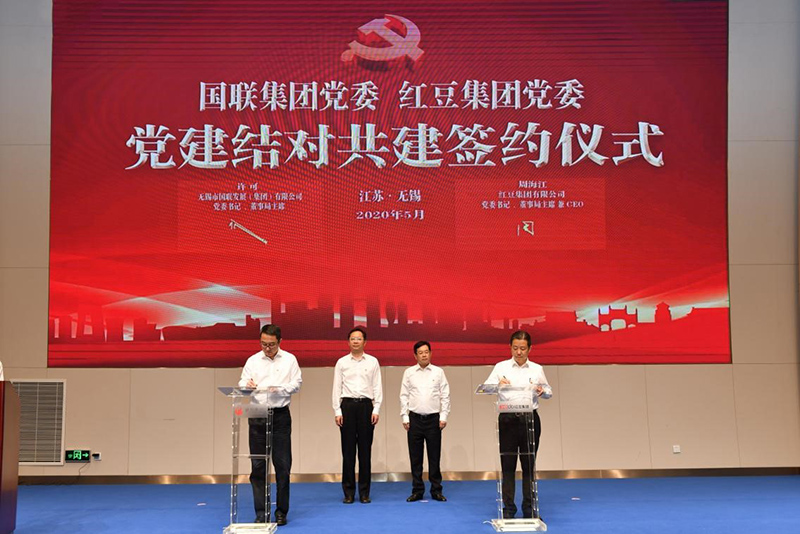 5月29日,紅豆集團有限公司與無錫市國聯(lián)發(fā)展(集團)有限公司在紅豆錫東財富廣場舉行了黨建結對共建暨戰(zhàn)略合作簽約儀式,共同探索新時期黨建工作新思路、新路徑、新方法,攜手為無錫爭當全省高質量發(fā)展領跑者注入更多活力。中共無錫市委常委、組織部部長馮軍,中共無錫市錫山區(qū)委書記顧中明,國聯(lián)集團黨委書記、董事局主席許可,國聯(lián)集團黨委副書記、總裁華偉榮,紅豆集團黨委書記、董事局主席兼CEO周海江,中共無錫市錫山區(qū)委常委、組織部部長竇虹等出席活動。